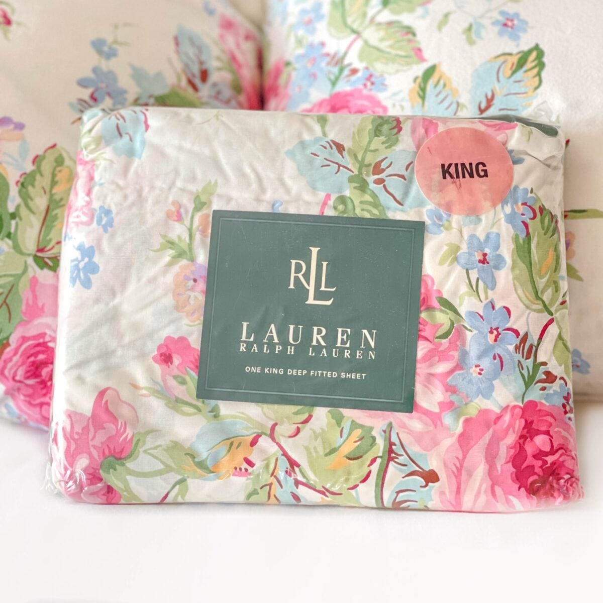 Rare 90s Ralph Lauren ‘Water Floral Pink’ King Fitted Sheet – Discontinued Vintage Bedding
