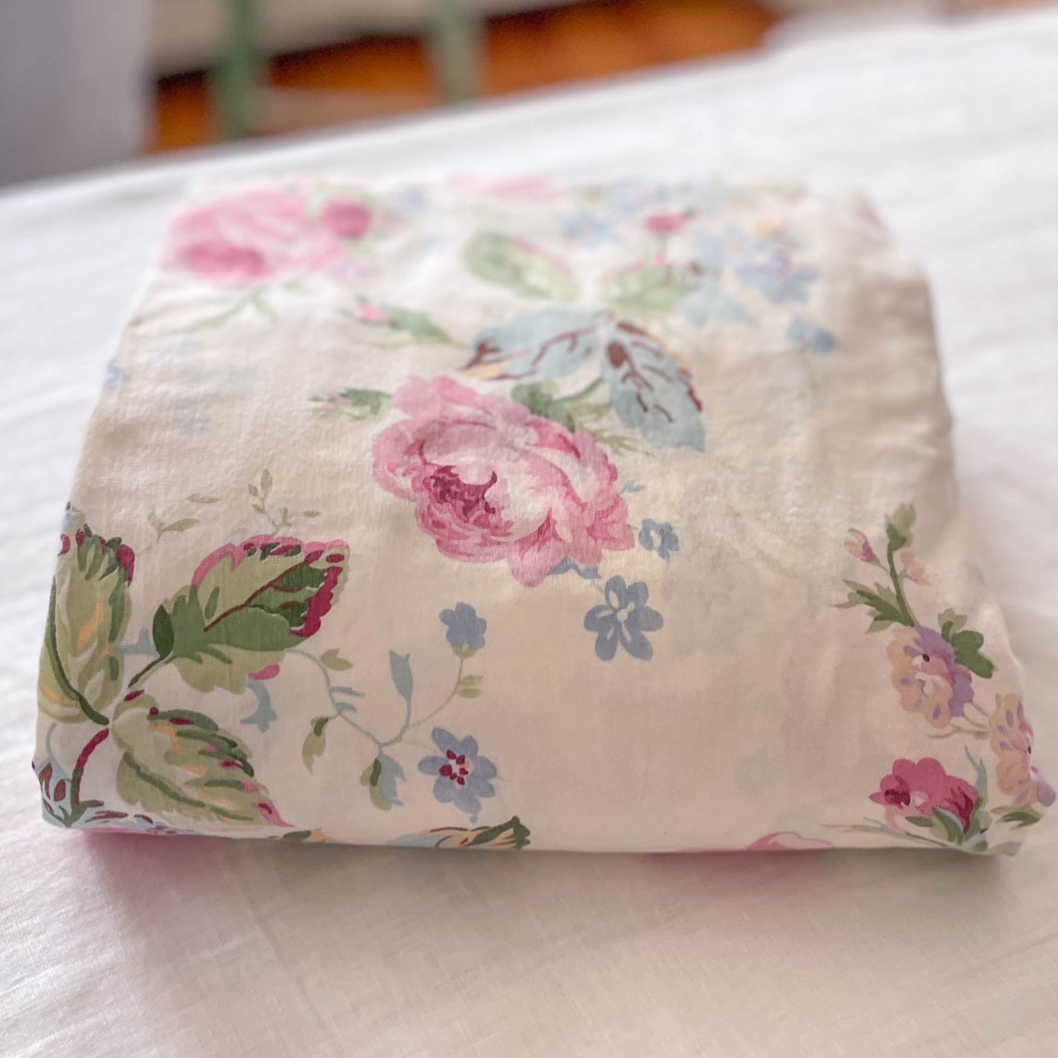 Rare Ralph Lauren ‘Water Floral Pink’ King fitted sheet from the 1990s. Features soft watercolor-style pink florals on 100% cotton. In excellent, unused condition. New old stock in original packaging. A discontinued vintage bedding piece, perfect for collectors or romantic cottage-style interiors.
