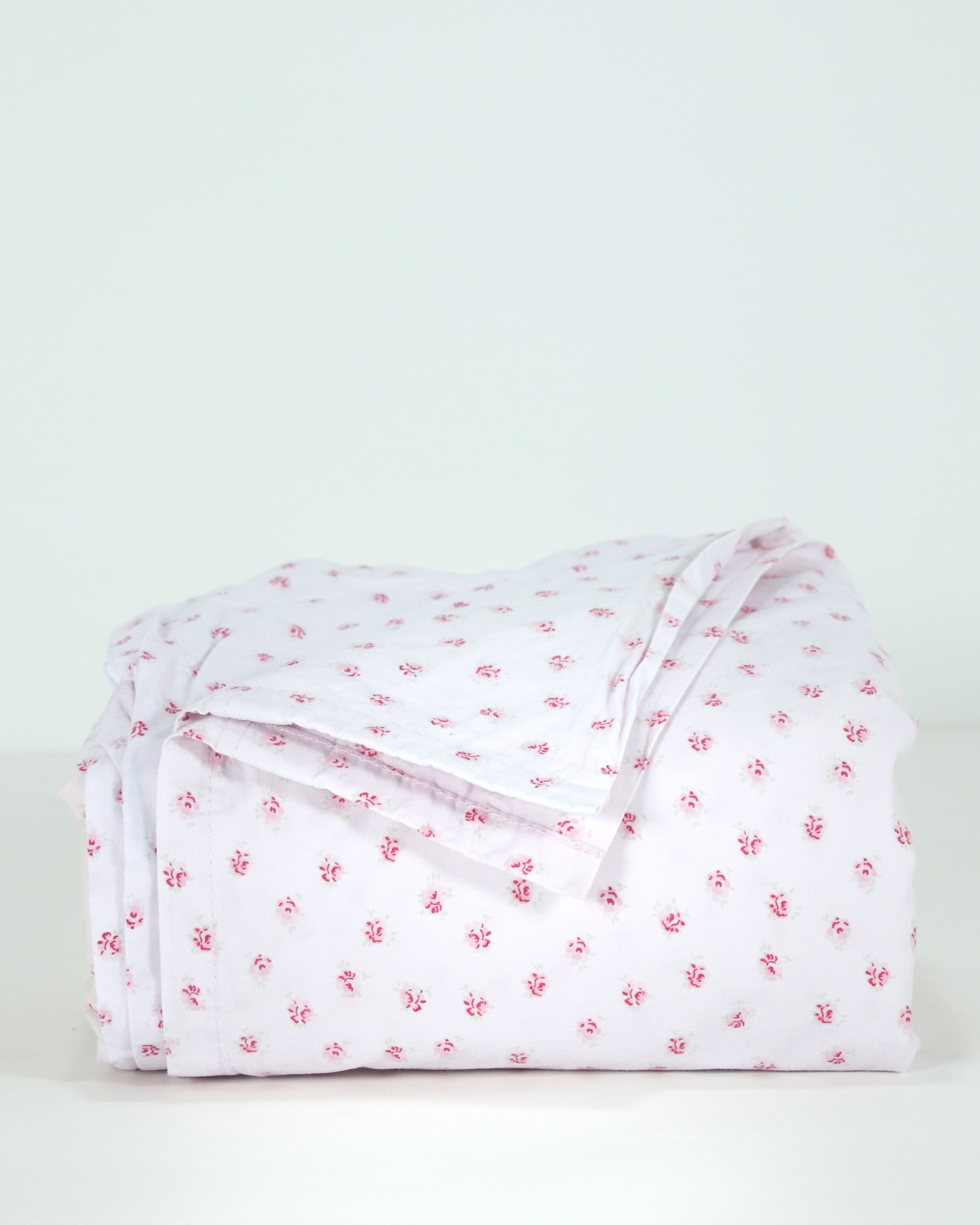 This Simply Shabby Chic full flat sheet features the charming Candy Cane Floral pattern, a delicate rosebud design arranged in a classic repeating layout. Set against a pink back ground, the pattern reflects the soft, romantic aesthetic that defined the original Target-era Simply Shabby Chic collections. Unlike later modern polyester releases, this piece is crafted in cotton, offering a more breathable, natural feel with the relaxed texture and lived-in softness collectors appreciate.