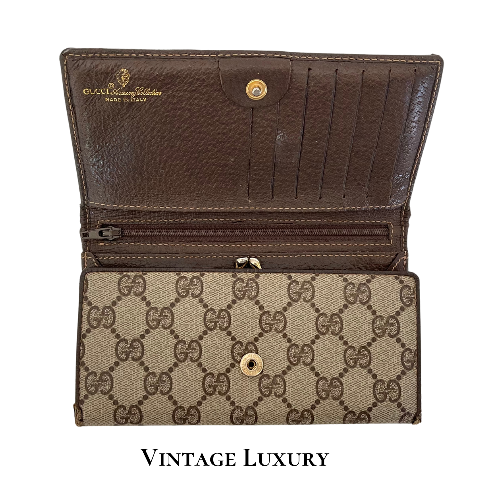 Authentic Vintage GUCCI GG Supreme Canvas Monogram Bifold Continental Wallet – Vintage GUCCI